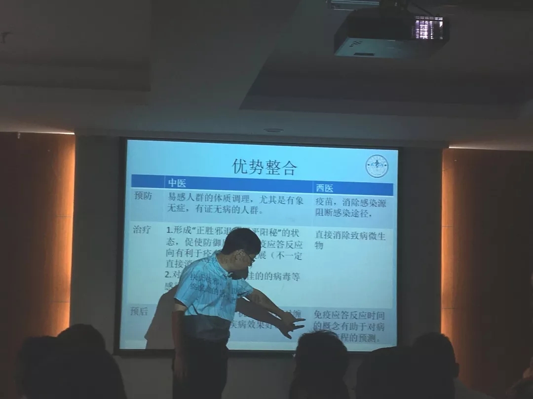 接着,厦门大学医学院王彦晖教授以诙谐幽默的方式开始进行此次讲座。首先,王彦晖教授发现,目前中西医在外科治疗上已经达到高度统一,但是在内科治疗上,怎样有效整合中医、西医的治疗特长,仍然有待业内人士共同努力。王彦晖教授也指出中医治疗感染性疾病不同于现代医学着眼于致病菌的治疗方法,主要通过内环境调理,恢复身体内环境的平衡,既能纠正当前的疾病状态,还可以无损于身体健康。所以中医在治疗感染性疾病上是有极大优势的。但是,中医要在感染性疾病治疗中有所作为,最为重要的是需要培养出能够继承中医思维的中医药人才,这一目标的完成需要社会各界人士的共同努力。王彦晖教授还表示中医、西医在人类健康的保障上各有所长,怎样更好地在疾病治疗中发挥中西医各自的优势,是需要众多医疗从业者思考、实践的问题。