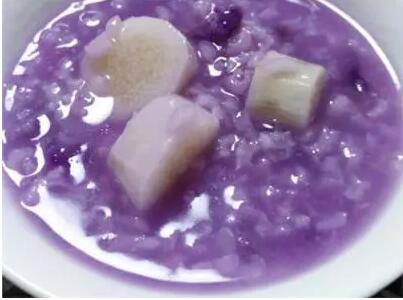 首先将山药和紫薯去皮后切成滚刀块,接着取适量大米洗净,放入电饭煲内胆中,加水,再将紫薯和山药一同放入煮熟。将要起锅时,再加入少量冰糖即可。