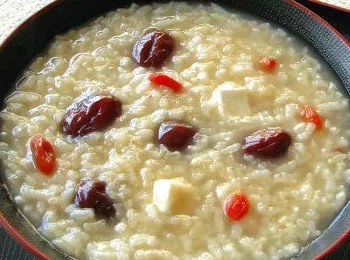 做法:先将茯苓捣碎。再将大米洗净后,与大米一同放入锅内,加水,接着加入2~3枚红枣,煮熟即可食用。